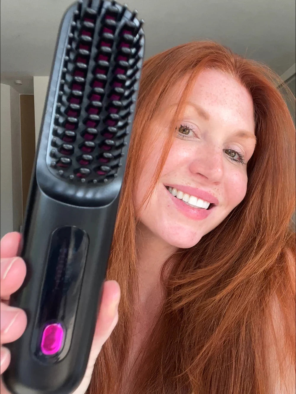 Découvrez le summum du confort avec notre brosse lissante sans fil. Idéale pour les retouches express, cette brosse élégante et portable offre des résultats dignes d'un salon de coiffure, sans les contraintes d'un fil. Lissez et coiffez vos cheveux sans effort, où que vous soyez, quand vous le souhaitez. Profitez d'une liberté totale et d'une chevelure impeccable à chaque utilisation. Dites adieu aux mauvais jours capillaires !